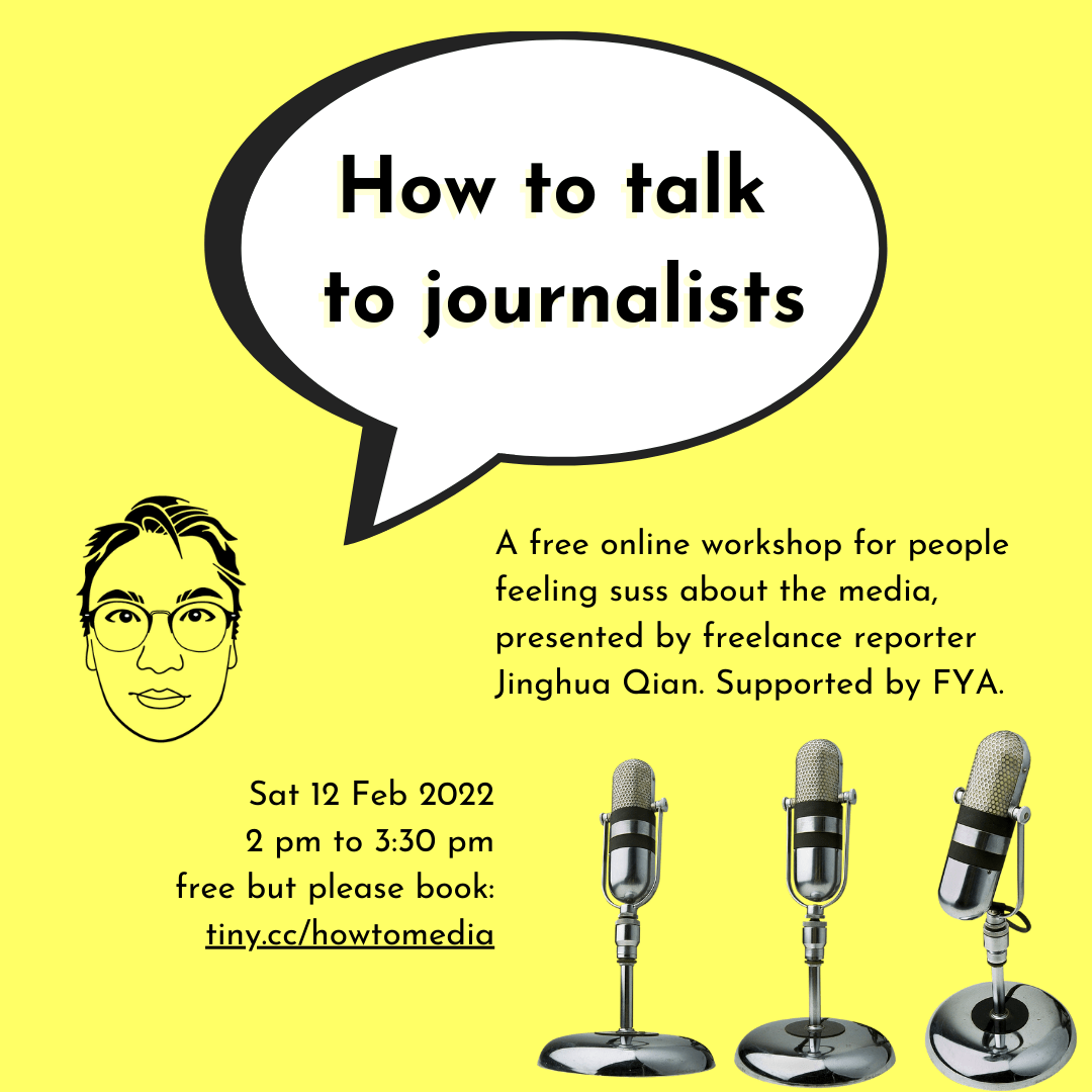A workshop for members of marginalised, underrepresented and misrepresented groups on how to assess and respond to media requests. Presented by freelance reporter Jinghua Qian with support from the Foundation for Young Australians.