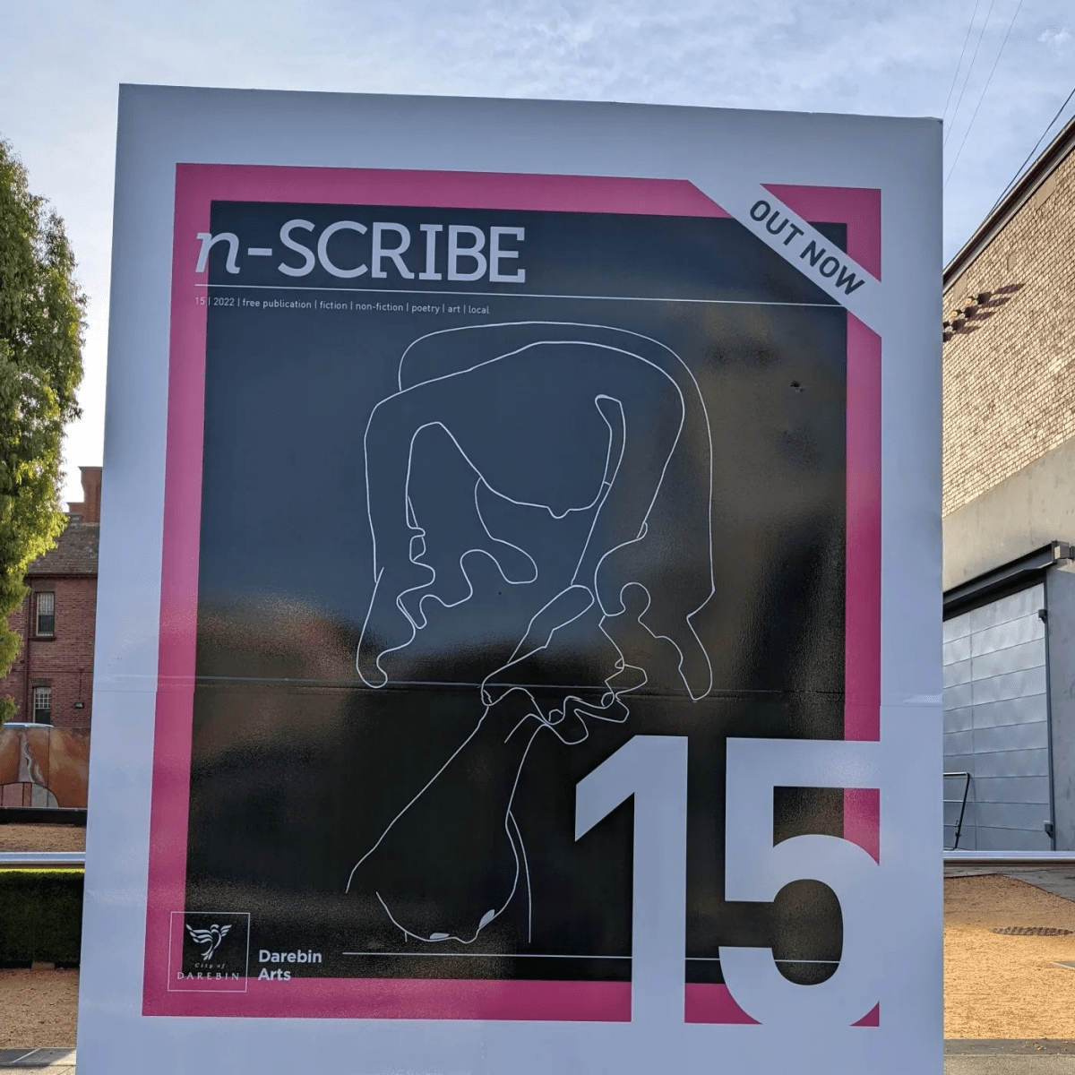 It’s been a pleasure working on this project over the last five months with the lovely volunteers of the n-SCRIBE working group, my co-managing editor Dr Maddee Clark, and staff at Darebin City Council. I haven’t edited a print publication for a while; it’s really satisfying to have something to hold that’s properly finished when it’s finished. And if you pass by Northcote Town Hall, we’ve even got a billboard!